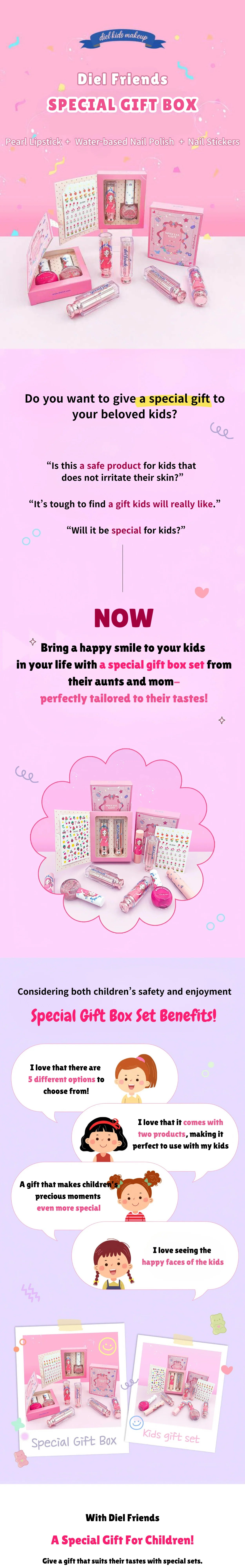 The [Diel Friends] Lipstick & Nail Polish Set is the perfect gift to bring a smile to any child’s face. This thoughtfully curated gift box includes a pearl lipstick, water-based nail polish, and adorable nail stickers, making it a delightful choice for playtime or special occasions.
