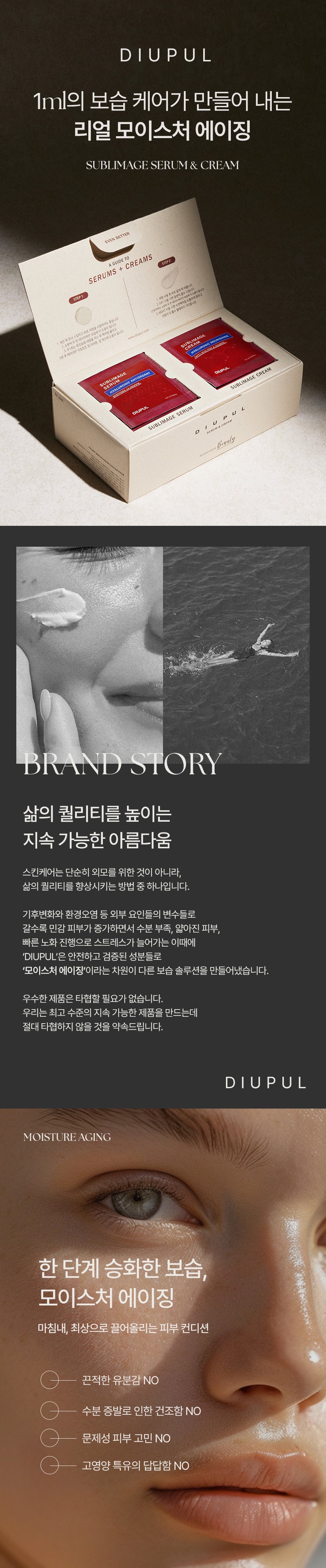 DIUPUL Sublimage Serum & Cream is designed for sensitive and acne-prone skin, providing deep hydration, enhanced elasticity, and protection against breakouts. With a dual-function formula for whitening and wrinkle improvement, it restores the skin’s natural balance using minimal yet effective ingredients. Developed from 388 real skincare coaching cases, this system supports healthier, more resilient skin.
