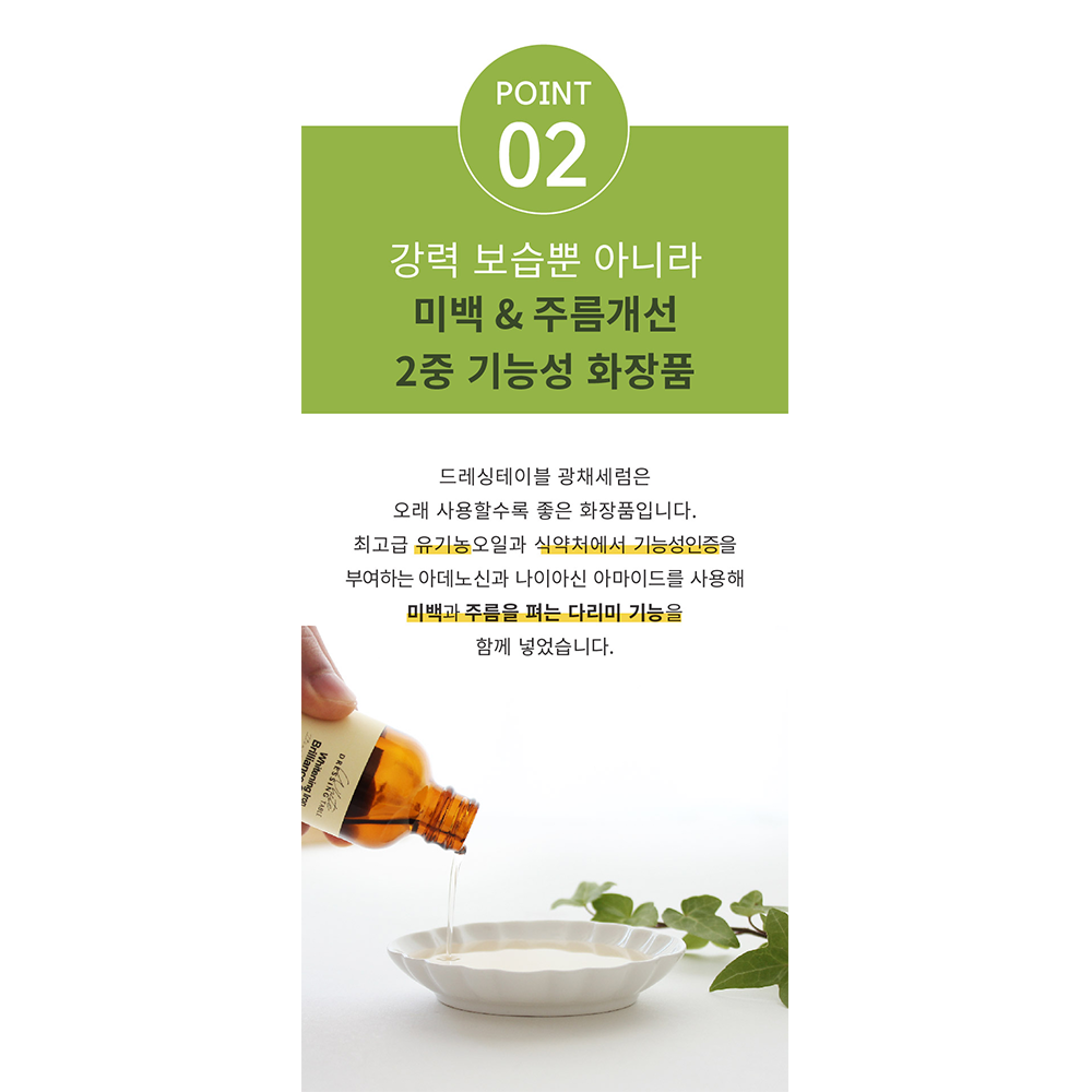 Enriched with niacinamide and adenosine, DRESSINGTABLE Brightening Iron Brilliance Serum helps reduce dullness, dark spots, and fine lines while promoting firm, elastic skin.
