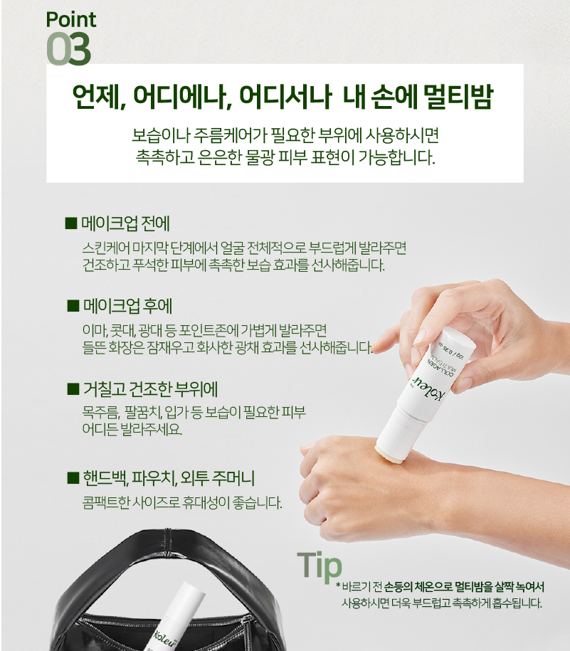 - KOLEUR Collagen Multibalm is your all-in-one glow stick for hydrated, firm, and youthful skin—anytime you need instant radiance.