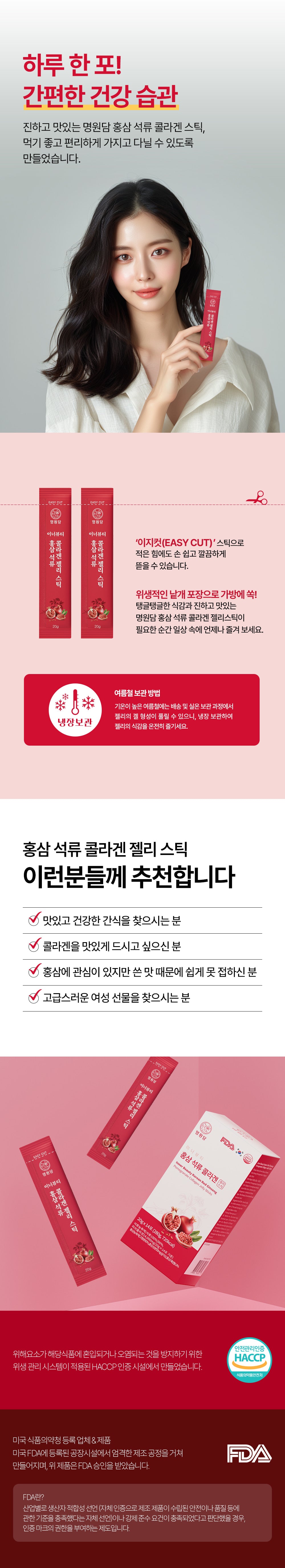 MYEONGWONDAM Inner Beauty Red Ginseng Pomegranate Collagen Jelly Stick delivers complete inner-beauty care with a refreshing blend of red ginseng, pomegranate, and collagen. Each stick helps support skin vitality, hydration, and radiance while improving overall energy balance.